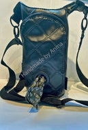 Black, leather feel, waterproof, dog walking bag